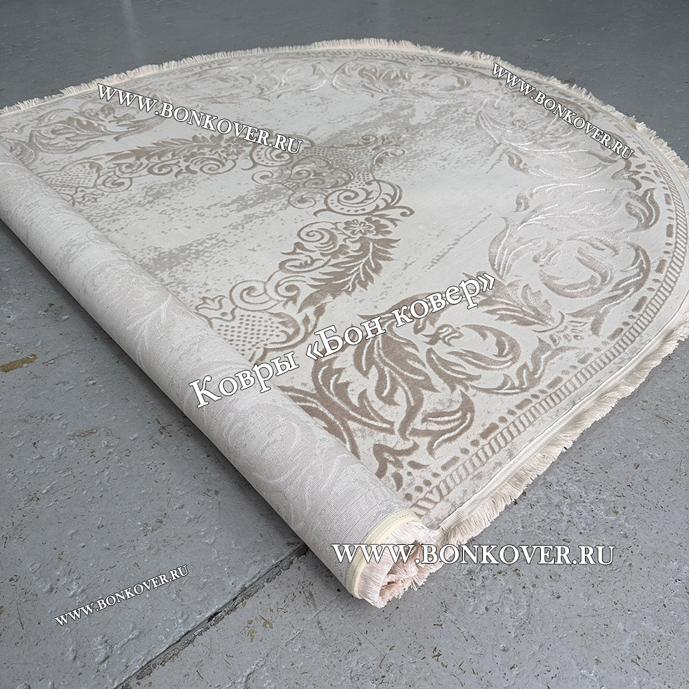 Импозантный Ковер Турция Для Гостиной Дизайн 95 Белый с Бежевым наполняет интерьер комнаты теплом и уютом, гармонично сочетает в себе изящество и стиль. Он соткан из износостойких материалов, комфортный и долговечный.
