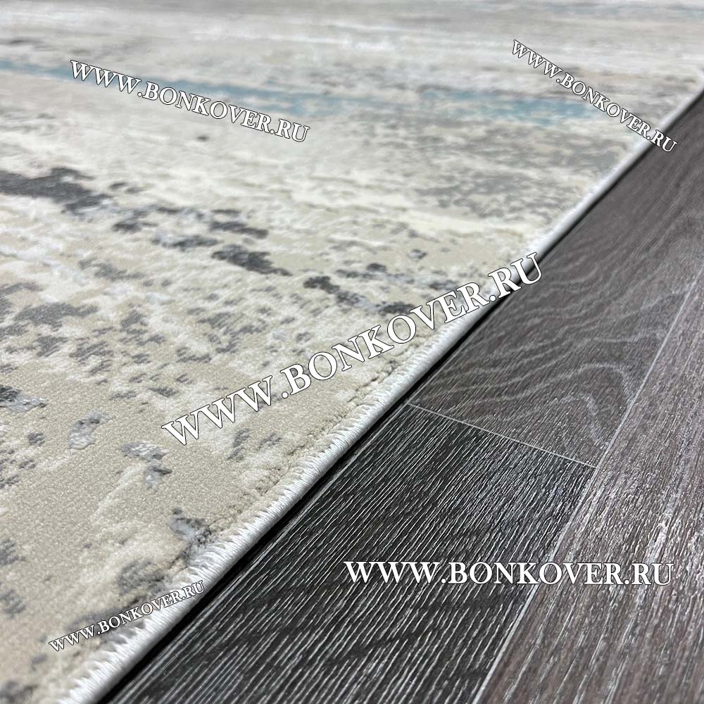 Импозантный Ковер Турция Современный Дизайн 05 Серый с Голубым Круг наполняет интерьер квартиры теплом и уютом, гармонично сочетает в себе изящество и красоту. Он соткан из современных материалов, комфортный и долговечный.
