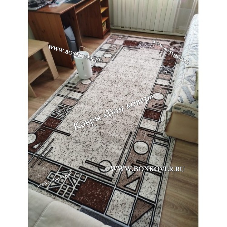 Турецкий Ковер Для Гостиной Дизайн 01 Бежево-Коричневый Прямоугольный
